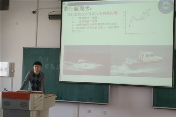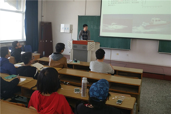 首先,郭鉴峰通过具体事例介绍公司各种竞赛情况和保研政策,着重让同学们对“个性化保研”有一定的了解。然后,主讲人以自己科创时用到的几种船型为主体,讲解员工在科创时常用的几种先进船型,并对各种船型的优点和缺点作了深入分析。其次,主讲人就设计新船型的思路和方法对同学们进行启发和点拨。最后,同学们提出许多问题,主讲人也一一答复。