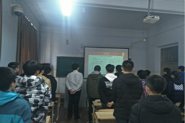 首先,通过一段习主席视频,形象地介绍了近五年来我国各个领域取得的巨大成就。然后,由团支书武裕鑫带领大家了解十九大的三个关键词——新时代、新思想、新征程。经过长期努力,中国特色社会主义进入了新时代。新时代中国特色社会主义思想,明确了中国特色大国外交要推动建设新型国际关系,推动构建人类命运共同体。新思想是一项理论创新,作为指导思想,必须长期坚持,使之成为真正的统一思想、总揽工作之“纲”,凝心聚力、创新发展之“魂”。最后展现了一幅宏伟蓝图——全面建设社会主义现代化国家新征程。最后,全体同学起立唱国歌,表达出军工学子的爱国情怀。
