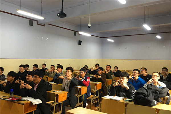 会议开始前,团支书张帅提前在互联网上搜索到了视频材料。会议前期,张帅首先以提问同学的形式带领全体成员回顾了十九大的重要精神。同时,联系两会热点,突出强调了祖国日新月异的变化。而后,成员们集体观看《厉害了,我的国》沙画视频,感受祖国的发展成就。会议末期,张帅组织互动环节,通过PPT,向同学们展示手指舞《中国很赞》的步骤,并与同学们一起学习了手指舞。最后,119全体成员在《厉害了,我的国》背景音乐下表演了手指舞《中国很赞》。