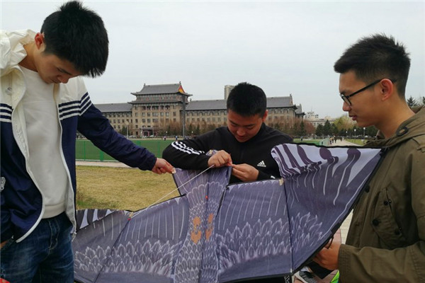 上午9时活动开始,同学们按寝室分成小组,将买来的风筝组装好,绕好线轴,放飞自己小组的风筝。组装和比赛的过程中,各个小组的成员分工明确,相互配合,有的人不会放风筝,遇到了很多问题,放得好的同学会主动过来帮助。放风筝时,小组中的每一名成员都有机会尝试,比赛持续大约两个小时。最后,同学们拿着自己小组的风筝合影留念,并期待下一次课外体育活动。