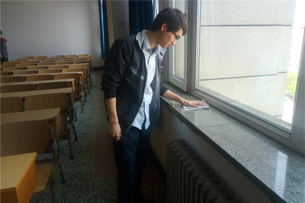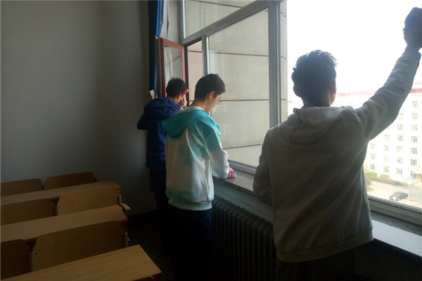 团支书毛家圆为同学们介绍了活动的目的,动员同学为21b教学楼打扫卫生。毛家园分别给同学们分配了擦窗户、擦黑板、扫地、清理桌膛等任务,成员们根据已被分配的任务都投入到了工作当中。清扫过程中,成员们分工明确,团结协作,互帮互助,把21b五楼各教室打扫干净。活动最后成员们在已被打扫干净的教室中共同合影,保洁阿姨也给予了同学们很高的评价。
