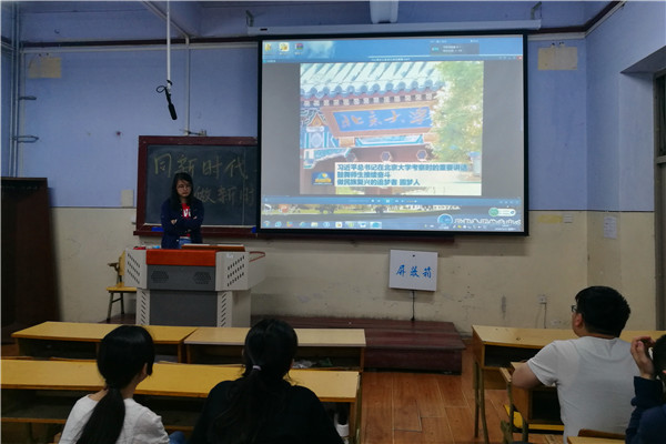 活动中团支书首先向大家强调举办此次团活的背景和意义,随后同学们观看了习近平总书记在北大考察的新闻和在纪念马克思诞辰200周年大会上的讲话视频,在观看视频后团支书带领同学们认真学习习近平总书记的讲话,同学们纷纷发言交流自己的学习感悟,结合自身经历谈青年学子如何在新时代坚定信仰有所作为。