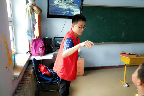 志愿者们在图书馆门口集合后一起乘车前往通乡小学。在与通乡小学的老师进行一番沟通后,志愿者开始上课,两名志愿者分别负责讲解与维持课堂秩序。第一节课的内容主要是给孩子们介绍了最初船舶的形态,在课堂上,志愿者还给同学们介绍了诸如海洋量子号、珍爱号等世界上著名的豪华游轮。第二节课志愿者给小朋友讲解的是船海历史:从刳木为舟到现代的大型轮船的发展以及人类对海洋的探索等等。随后,志愿者向孩子们提出问题,并让一些同学到讲台发言。同学们踊跃举手发言,积极参与到课堂活动中并与者愿者们互动。