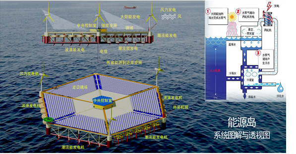 海上能源岛——针对我国近海、南海海岛建设和装备作业需求,开发5MW-20MW级海上能源岛,在海上采集潮流能、波浪能、海上太阳能和风能等多种形式能源,通过可再生能源综合利用生产电能、淡化海水、制盐和制氢等,为远离大陆海岛、海上作业装备、海水养殖提供能源及其系统技术和装备。