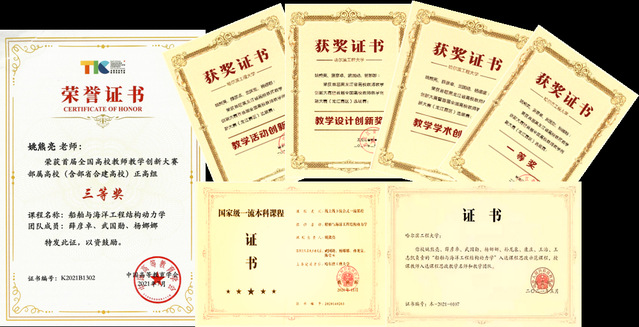 团队讲授的“船舶与海洋结构动力学”获评首批国家级一流本科生课程、国家级课程思政示范课程和教学团队,教材荣获首届黑龙江省教材建设奖二等奖,入选工信部规划教材。团队承担国家自然基金重点项目、各类国家级专项与研发计划项目等十余类百余项科研任务;获得国家技术发明二等奖、国家科技进步二等奖、国防科技进步一等奖和二等奖等国家级、省部级奖项十余项;发表SCI等高水平学术论文400余篇,申请国家发明专利200余项,出版《船体振动》等著作7部。