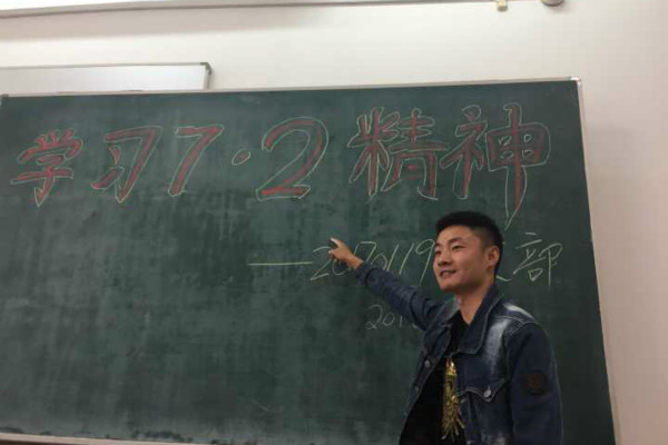 活动开始前,119班团支书张帅首先在教室进行了黑板、座位等一系列布置。九点四十分全员到齐后,正式开始团活。活动前期,由张帅向同学们介绍了团十八大和“七·二”讲话的简要内容和精神。活动中期,郑兴强调了青年思想动态对学习生活的重要性,鼓励全体同学要“不忘跟党初心,牢记青春使命”。活动后期,于一飞分享了自己学习、生活的经历以及心得体会,号召同学们紧跟时代,不断充实自己。活动最后,张帅总结了本次团活内容。