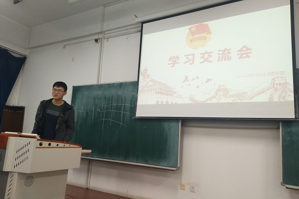 10月21日,20170113班于11号楼举办了以“学习交流会”为主题的主题团活,20170113班团支书韩晓剑主持此次活动。