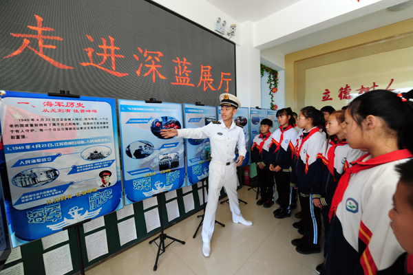“我知道这个世界很大很美,希望有一天我可以沿着我们乡里的小路走出去,到外面的世界看一看,学到怎么把我的家乡变得更美的本领,让我的家乡变得和外面的世界一样美……”这是共建启动仪式上永发乡公司小学部六年一班的刘彦宇同学说的一段话。共建启动仪式结束后,科普流动展厅“走近深蓝”开展,展览分为“海军历史—从无到有,往昔峥嵘;海军装备—大国利刃,闪耀东方;海军科研人物—风流人物,还看今朝”三个部分,较为全面展示了我国海军及海军装备发展的历史。展览结束后,“春雨教育科普扶智计划”讲师团成员杨鑫为六年一班、六年二班 员工上了一堂精彩的“船舶浮力”的科普课程,并与同学们一起动手制作了双桨船。看到自己亲手制作的双桨船在水中航行,孩子们脸上露出了开心的笑容。