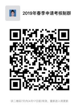 请2019年春季学期“申请-考核”制的考生务必扫二维码入群,后续通知,将在群中发布。入群后,将群中名字改为真实姓名,以便沟通和交流。