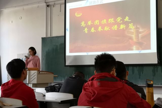 2019年4月15日20180107全体同学于21b212教室参加了主题为“青春心向党,建功新时代”的主题团活。