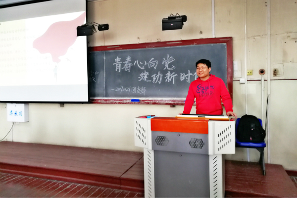 4月12号下午,20170121团支部在11号楼133大教室开展了主题为“青春心向党,建功新时代”的团日活动。团支书肖振宇带领同学们领略五四精神,共同纪念五四运动100周年。