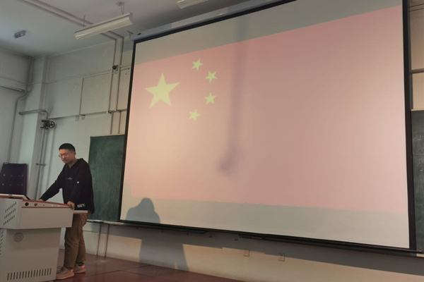 在团支书李林介绍了活动基本流程之后,同学们观看了阅兵视频剪辑,感受了祖国今日的强盛。随后,同学们在文体委员高东升的带领下齐唱了国歌,并了解了国旗与国歌的历史。在活动的第三阶段,先后有数位同学上台演讲,抒发了自己对祖国的情感。活动的最后,班长王宇扬带领全体同学重温了入团誓词,结束了本次活动。