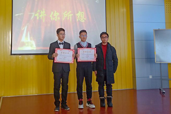 新生演讲比赛经过十二月初的宣传、初赛等环节,最终有十名选手成功晋级决赛。决赛以视频演讲和即兴演讲的形式展开,参赛选手通过分组观看不同的视频后进行演讲。视频演讲结束后,选手抽签并对所抽得的社会事件进行即兴演讲。整场比赛中,选手们或激昂高亢、或低沉吟颂,都展现出了自己的风采。评委对每位选手的演讲进行了指点和评判,并为最终的获奖选手颁奖。