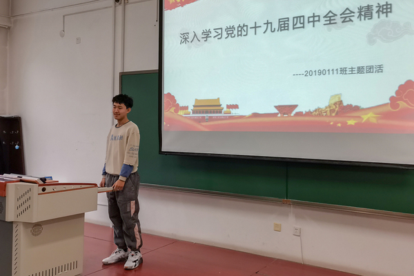 活动中,团支书邢博介绍了本次活动的流程和目的,简要阐述了活动的宗旨。他主要介绍了十九届四中全会的背景和意义,并带领支部成员重温中国共产主义青年团团歌。全体成员观看了十九届四中全会相关纪录片,倾听并学习了习近平总书记关于《中共中央关于坚持和完善中国特色社会主义制度推进国家治理体系和治理能力现代化若干重大问题的决定》的说明。同时,支部成员研读了《决定》的相关内容,并围绕这些内容进行了分析讨论与心得交流。