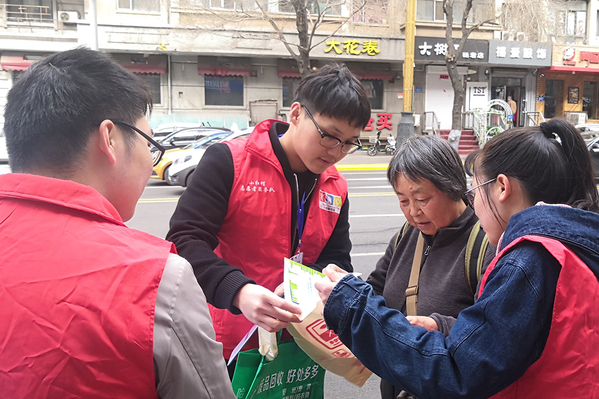 4月9日,在队长的带领下,小红帽志愿服务队的众人来到花园社区进行有关垃圾分类的公益活动。