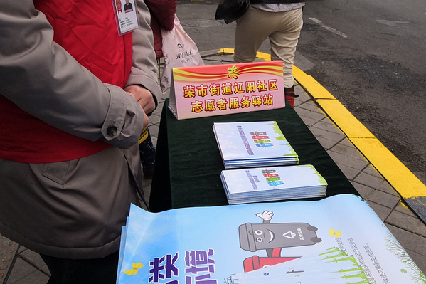 有句俗话说得好,“授人以鱼不如授人以渔”,要想体现这次活动的意义,就少不了向社区里的居民们科普有关垃圾分类的知识。居民们纷纷围观,不时有人上前询问。但是如果仅仅只有科普教育,恐怕很难打动现场的听众。我们小红帽志愿队使用准备好的道具现场向居民们演示了实用的垃圾分类小技巧。为避免出现在集中垃圾时不同种类垃圾再次混合的情况,我们与社区工作人员进行了沟通。