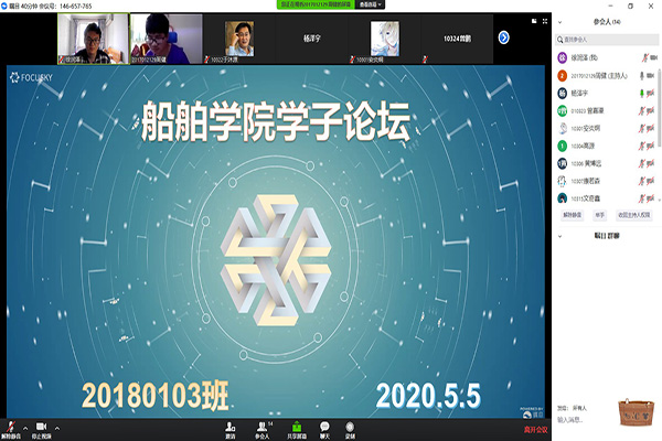 学子论坛是面向船院同学们来解决校园学习与生活上遇到的各种问题以及反馈同学们合理建议的平台。本次线上学子论坛主要解决了同学们的线上学习中遇到的问题。首先,周健向全体参会成员简单介绍了本次会议目的,并就同学们提出的线上学习的考核方式等问题进行了回答。针对原有笔试的调整,他进一步说明了线上学习采取的答题方式。此外,他又对同学们居家生活上遇到的问题进行了解答。最后,周健对本次学子论坛的开展进行了总结。