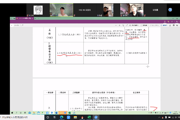 本次会议以线上视频的形式展开,员工会主席对本年度员工会工作进行陈述,针对员工会评比标准和要求,指出本学期员工会工作的部分材料整理汇总问题。各部部长对各自所负责的员工工作进行简要汇报,对工作材料整理问题发表看法。同时,员工会秘书长对该问题发表指导意见和看法,鼓励各部部长负起责任,活跃思维,提出积极想办法,努力争分数。