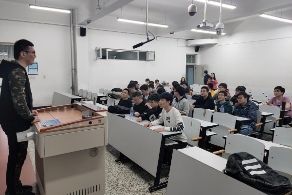 徐润泽向同学们对嘉宾宋卫国老师进行介绍。宋卫国老师分别从入党详细流程、保研考研、专业知识学习及专业就业等方面,结合自己的大学经历及教学经历,给予同学们建议,并对同学们大学阶段的学习取得优异成绩予以祝愿。
