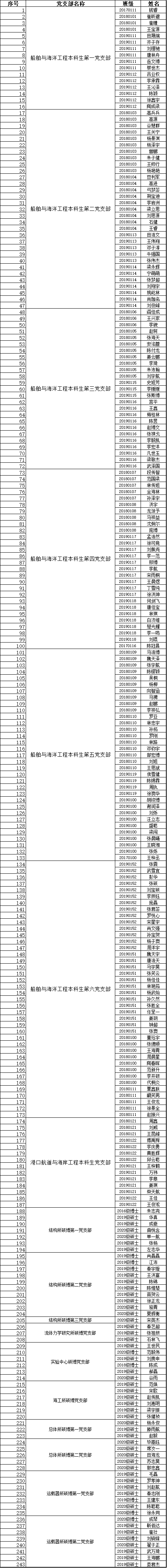 经培养考察、民主推荐,拟将钱睿等243位同志作为党的发展对象。现将钱睿等243位同志的有关情况公示如下: