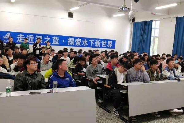 深之蓝海洋科技股份有限公司董事长魏建仓向同学们介绍深之蓝及行业分享、学长职场分享、职业生涯规划。他以自己的成长与企业的发展历程来鼓励同学们要养成遇事不怕事、遇到难题要克服的精神。2010级学长董焰以自己的求学经历与生活经验告诉同学们:要在本科及研究生阶段打牢学科基础知识、加强与其他人才的合作与交流、广泛地学习知识、树立终身学习的态度。王金婷会计主管通过举例的方式向同学们传输今早树立职业生涯规划的思想。