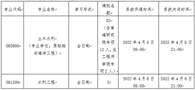 优秀普通全日制应届本科生或普通全日制本科毕业生,符合《2022年全国硕士研究生招生工作管理规定》中调剂的基本要求,本科专业以及第一志愿报考专业与调剂专业为相同或相近专业,土木水利(专业学位,原船舶与海洋工程)总分≥273,水利工程总分≥273,数学必须考数一或者数二,外语必须考英一或者英二、俄语或日语。