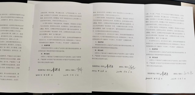 《责任书》由公司党委书记李荣生与中层领导人员副职、教工支部书记进行个性化签订,将本年度重点工作融入责任书中。要求围绕责任内容,层层传导压力、层层负起责任,不断落实全面从严治党工作。