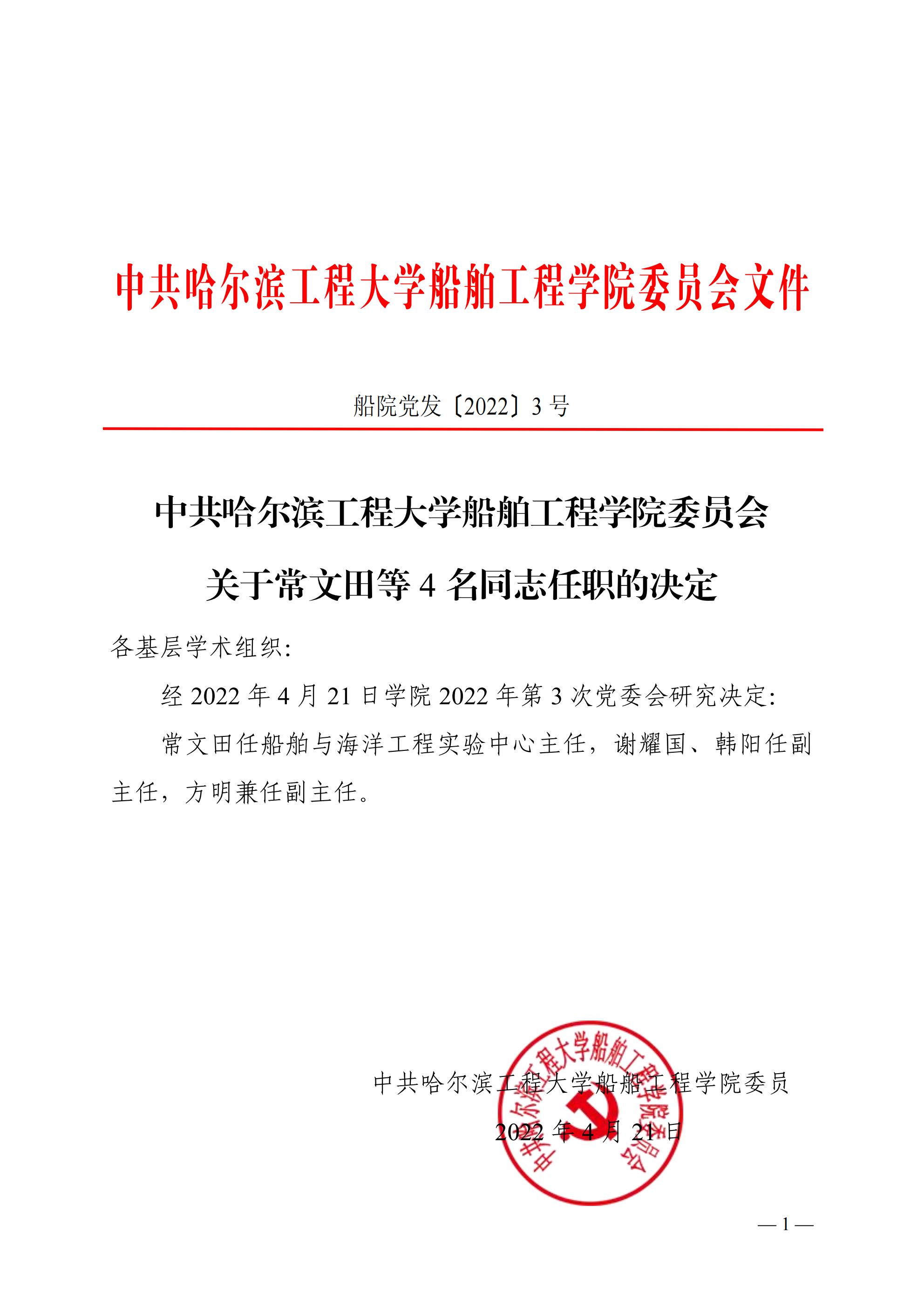 中共ladbrokes立博委员会关于常文田等4名同志任职的决定(船公司党发〔2022〕3 号 )