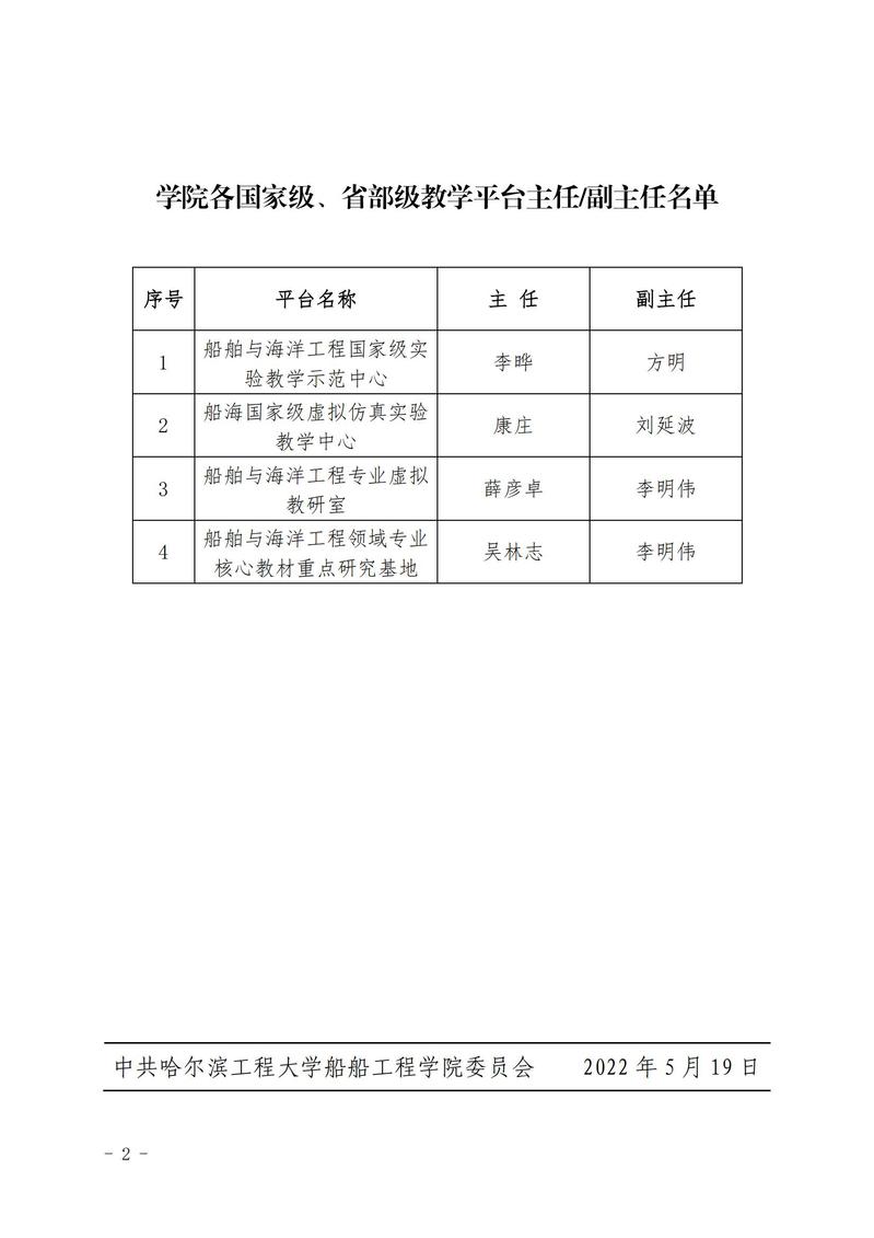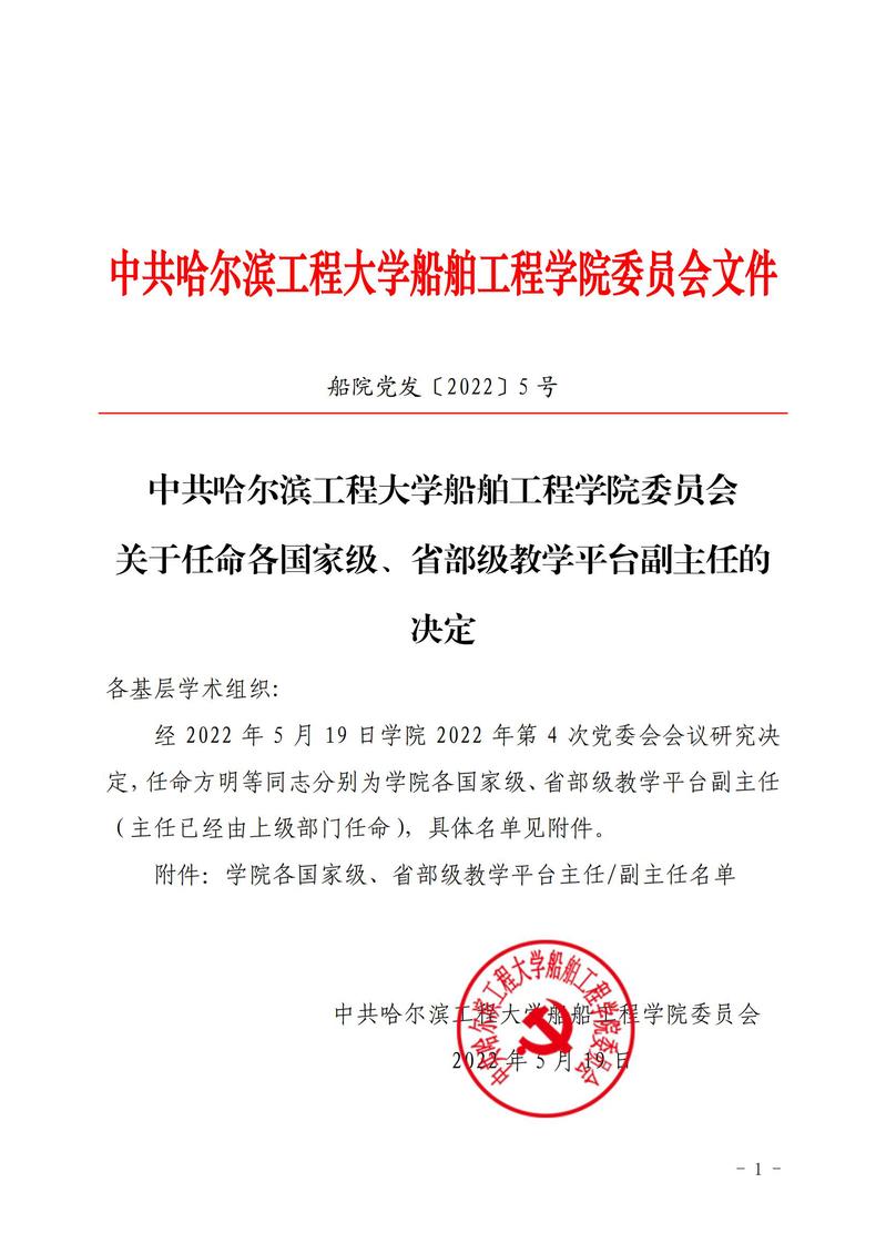 中共ladbrokes立博委员会关于任命各国家级、省部级教学平台副主任的决定(船公司党发〔2022〕5号)