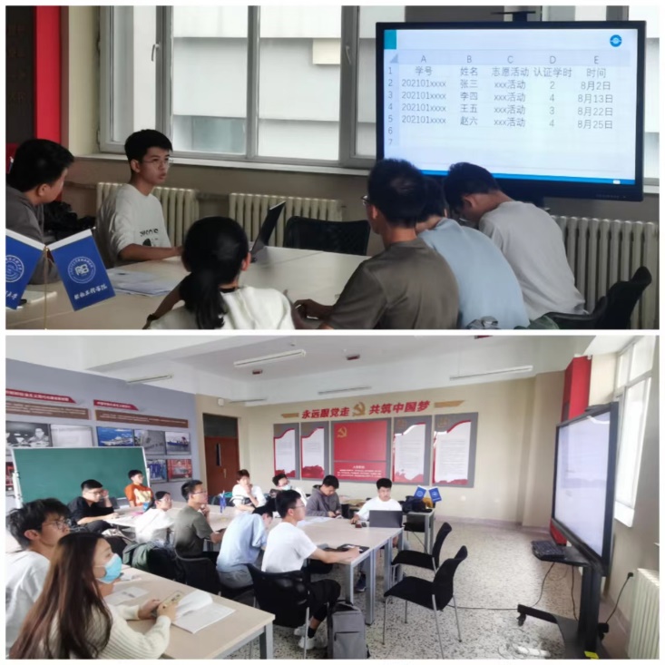 随后韩岚就公益材料的报送方式进行说明,介绍了日常公益活动的参与和龙江志愿的注册事项,并且向各班团支书说明了公益学时的计算、上报。