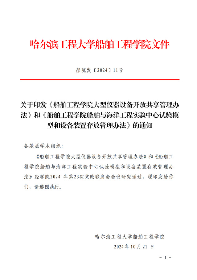 关于印发《ladbrokes立博大型仪器设备开放共享管理办法》和《ladbrokes立博船舶与海洋工程实验中心试验模型和设备装置存放管理办法》的通知