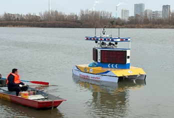 聚焦交通强国战略和国防安全保障中生态航道、智慧航道和界江界河安全对全域全天候巡查的迫切需求与相关装备尚属空白的实际现状,团队依托黑龙江省重点研发计划项目,研制了基于水流发电能量自持,具有全面感知、智能识别、实时评估、自主决策和自动执行的,我国首个能量自持水上无人值守智监管基础保障平台—“水上卫士”号,为水面全天候、全域、无人、精准化管控提供了新模式。“水上卫士”号突破了内河航道边缘水域复杂流场下低流速高效发电技术,将装备适用范围拓展至我国90%以上内河管控水域,解决了传统风能和太阳能无法为水上大功率管控设备提供全天候、充足电力供给的行业难题;搭建了首个“万级”规模的水上环境异变、船舶航行违规、违法、危险行为事件特征库,攻克了水上环境异变、危险行为和违规事件环境自洽专属识别技术,识别响应时间<1s,识别正确率>95%。成果已完成江试,下一步将通过“基础保障平台+”的模式,面向航道、渔业、海事、水上应急和界江界河巡逻等多种业务需求,推动产品设计定型和批量生产,未来预计产值超数十亿元。